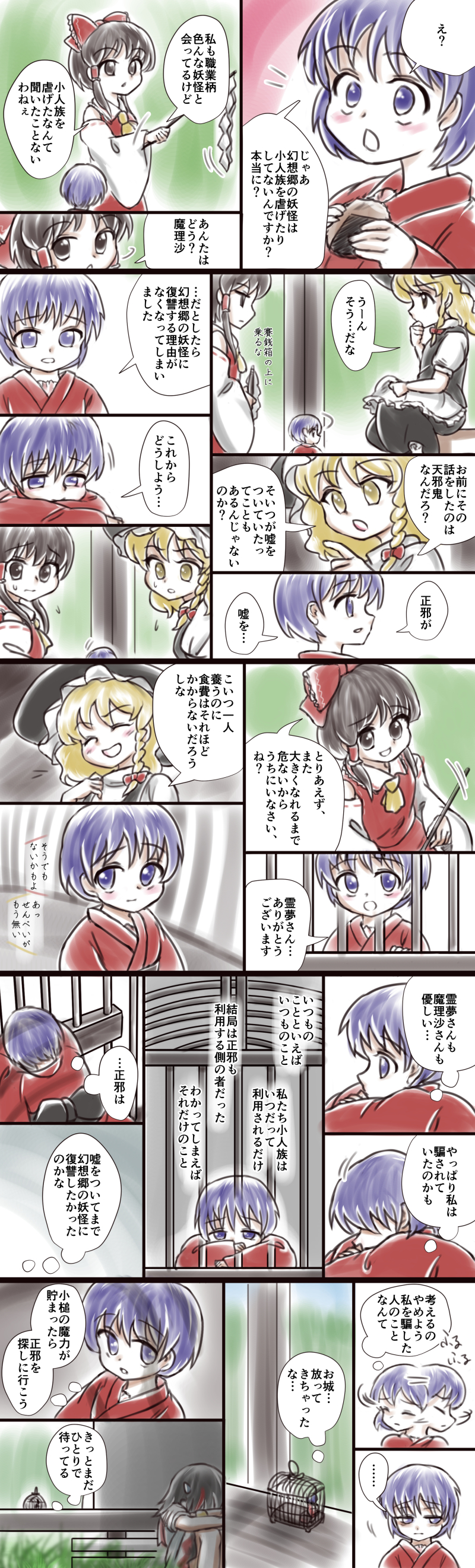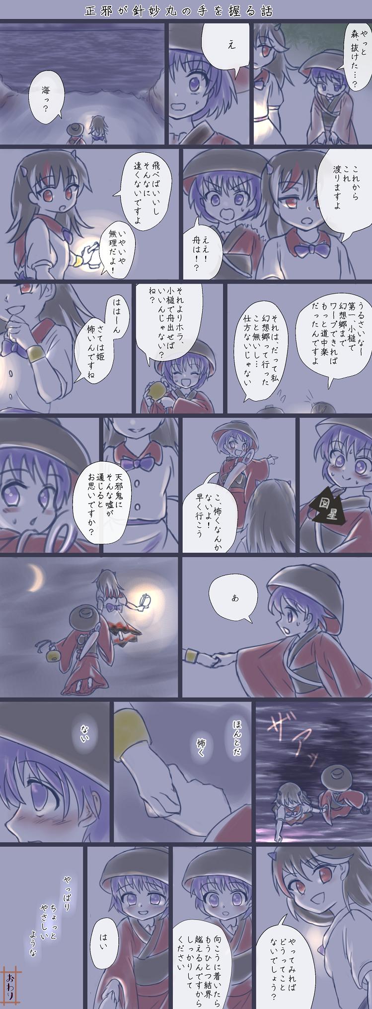 この設定を採用した上の漫画じゃ輝針城が移動できてないじゃん!ってなるのですが、正邪と針妙丸が先に幻想郷に行く→後で鬼の世界から幻想郷上空へ輝針城を小槌の力でワープさせる、が一番スマートだと思います。正邪が鬼の世界から幻想郷へ行くルートを知っているのは謎ですが、原作でも説明されていないし説明される気配もないですね。レッツ妄想。