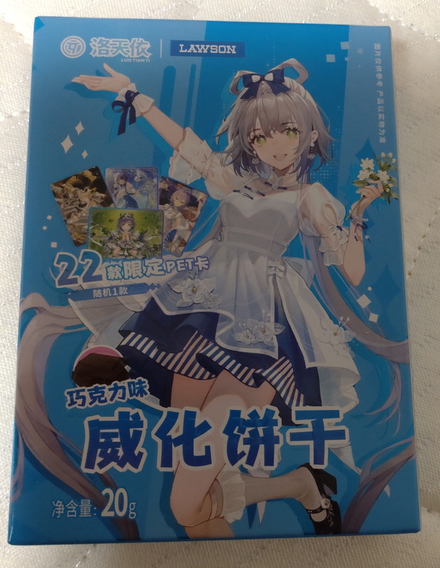 オチがない愚痴になってしまったので、コンビニで買った洛天依ちゃんのなんかのお菓子でお茶を濁して出国編終わりとします。わしゃあこういう髪型に目がないんじゃあ(宝石の国のゴーストクォーツ、ゾンサガの紺野純子、東方の九十九弁々など)。