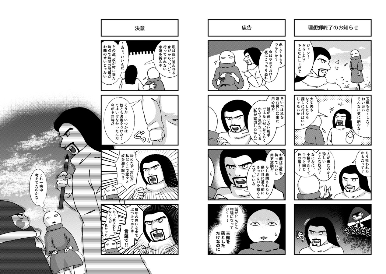 実際、掘り下げるとちょっと興味深いテーマだと思うんですよね。作中で唯一、ダフファーが皇太子でも自分でもない他人の命を守るために力を行使したシーン(のはず)なので、変わってる点ではある。4コマで消化するには惜しいネタだったかもとも思う。