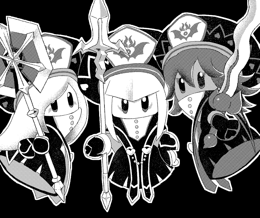 三魔官のモノクロ絵描いてベタとかトーンとかの使い方考えるぞ!って思って描いたんですけど、そういえばオルスタ6のペーパーでとっくに描いてたんでした。すっっっかり忘れてた……。結局それ見ながら描きました。まぁ自作ブラシの実践をやってみたかったんでいいですけど。